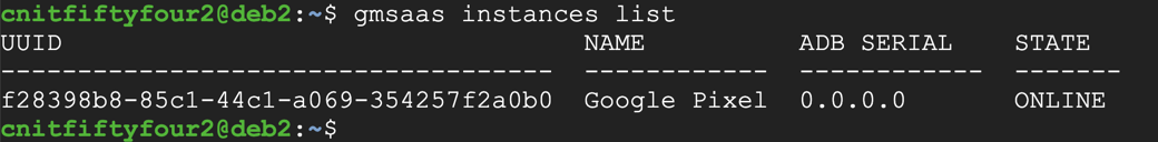 gmsaas instances list