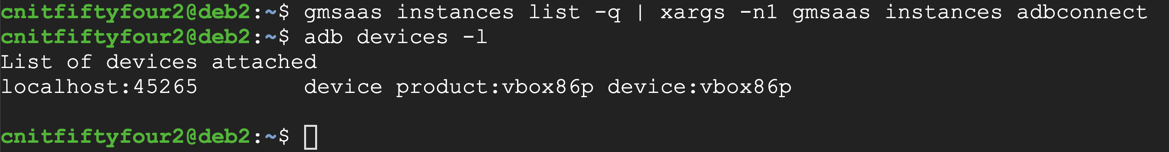 Note: the first time I ran the "gmsaas adbconnect" command, it