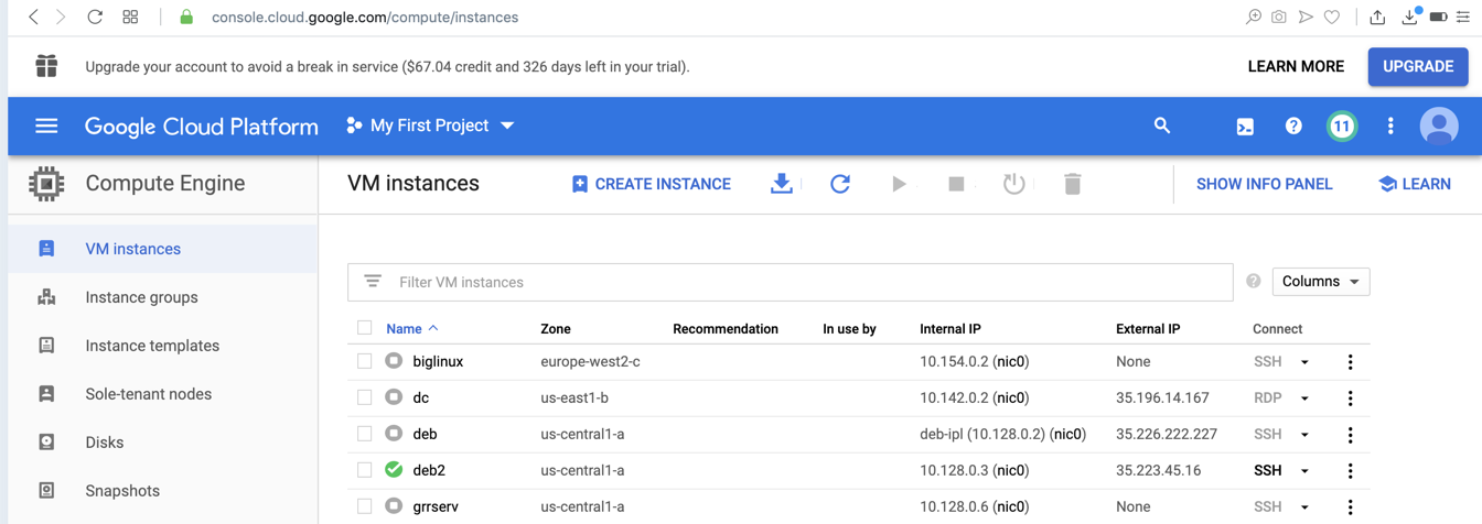 You see your running instance,