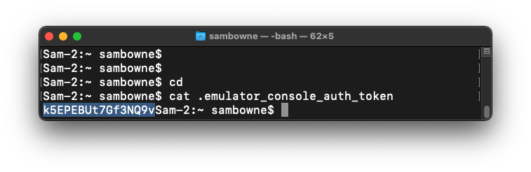 Open a new Terminal window and execute these commands:Carefully highlight and copy your auth_token, as shown below.