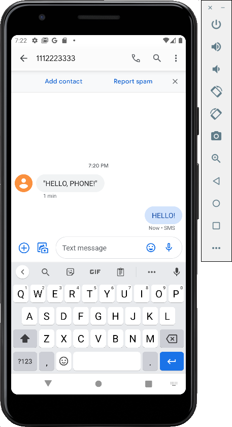 ncat 127.0.0.1 5554 sms send 1112223333 "HELLO, PHONE!"