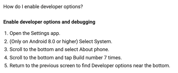 On the Nexus 5, you need to enable Developer Options first, as shown below.