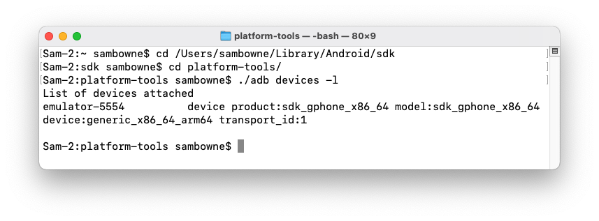 In a Terminal or Command Prompt, execute the commands below, replacing the path in the first command with the correct Android SDK Location on your system.