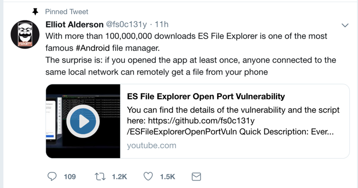 Here is the writeup describing the vulnerability: ES File Explorer Open Port Vulnerability - CVE-2019-6447