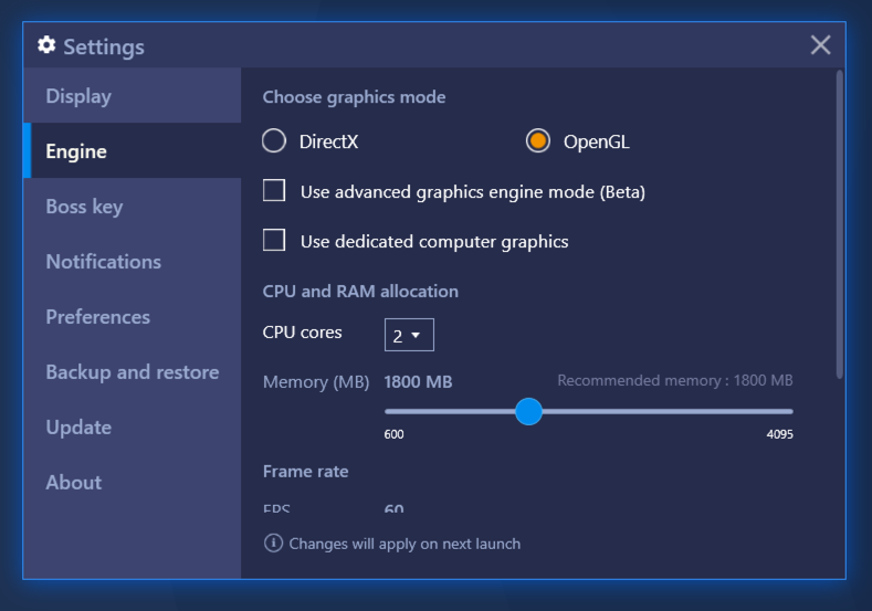 If Bluestacks won't start, or freezes, it's usually a problem with the graphics settings.Use Task Manager to kill Bluestacks and start it again. While it's starting, at the top right, click the gear icon.