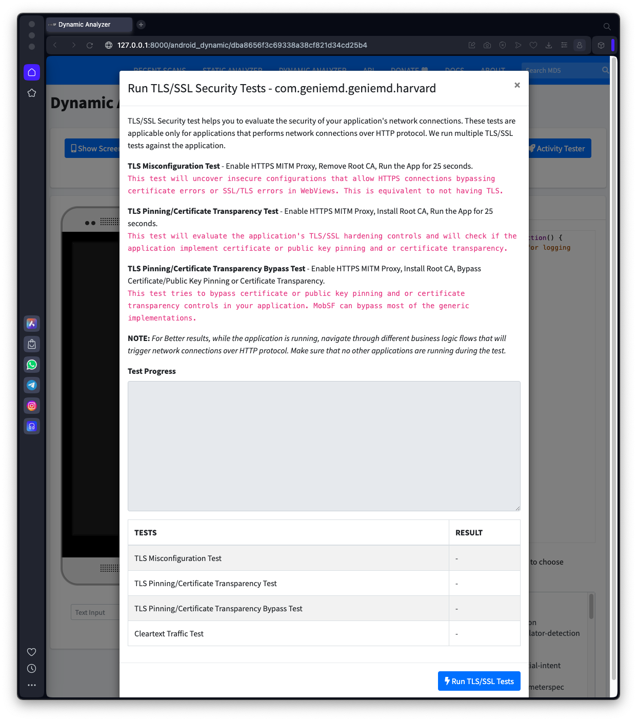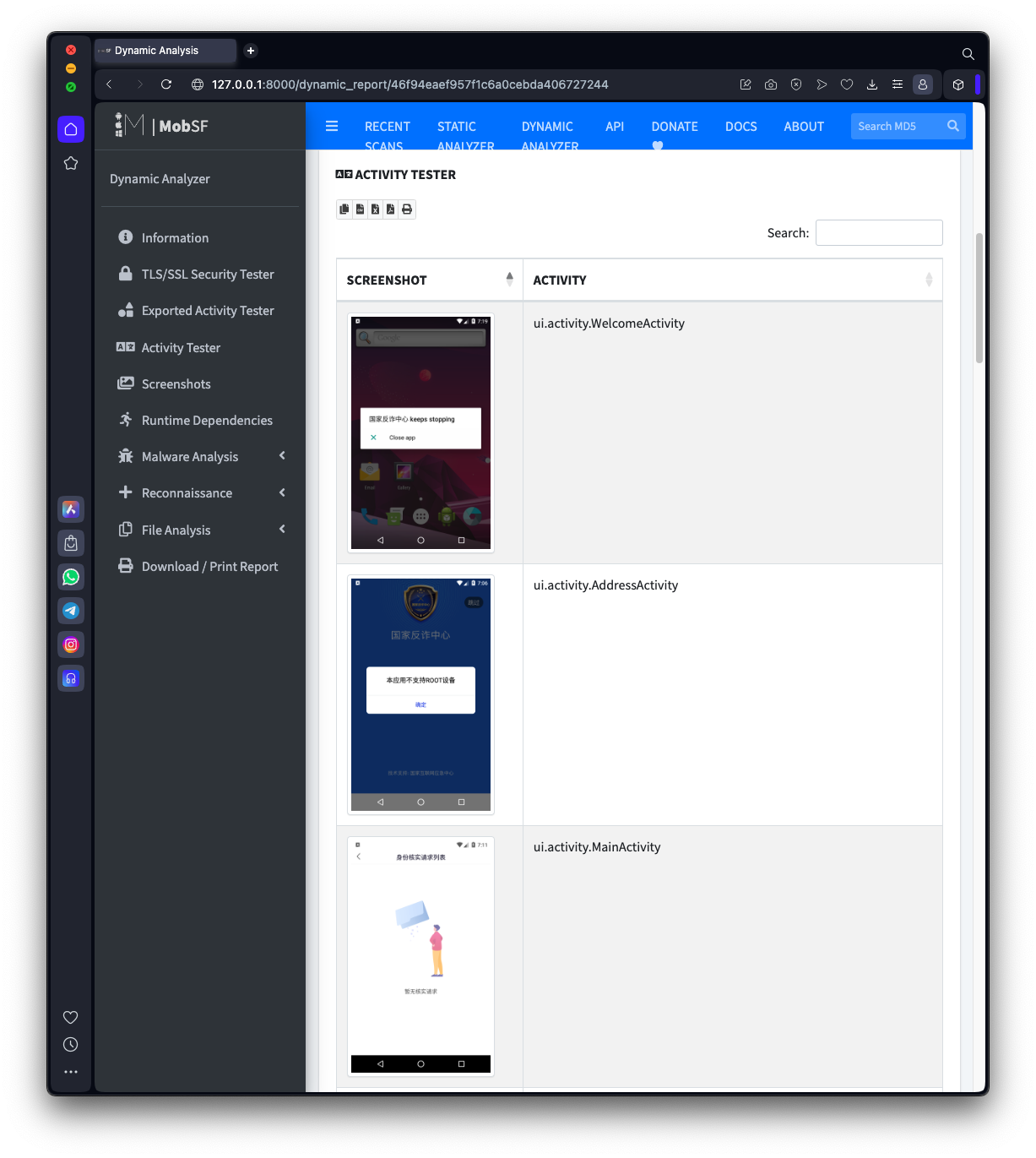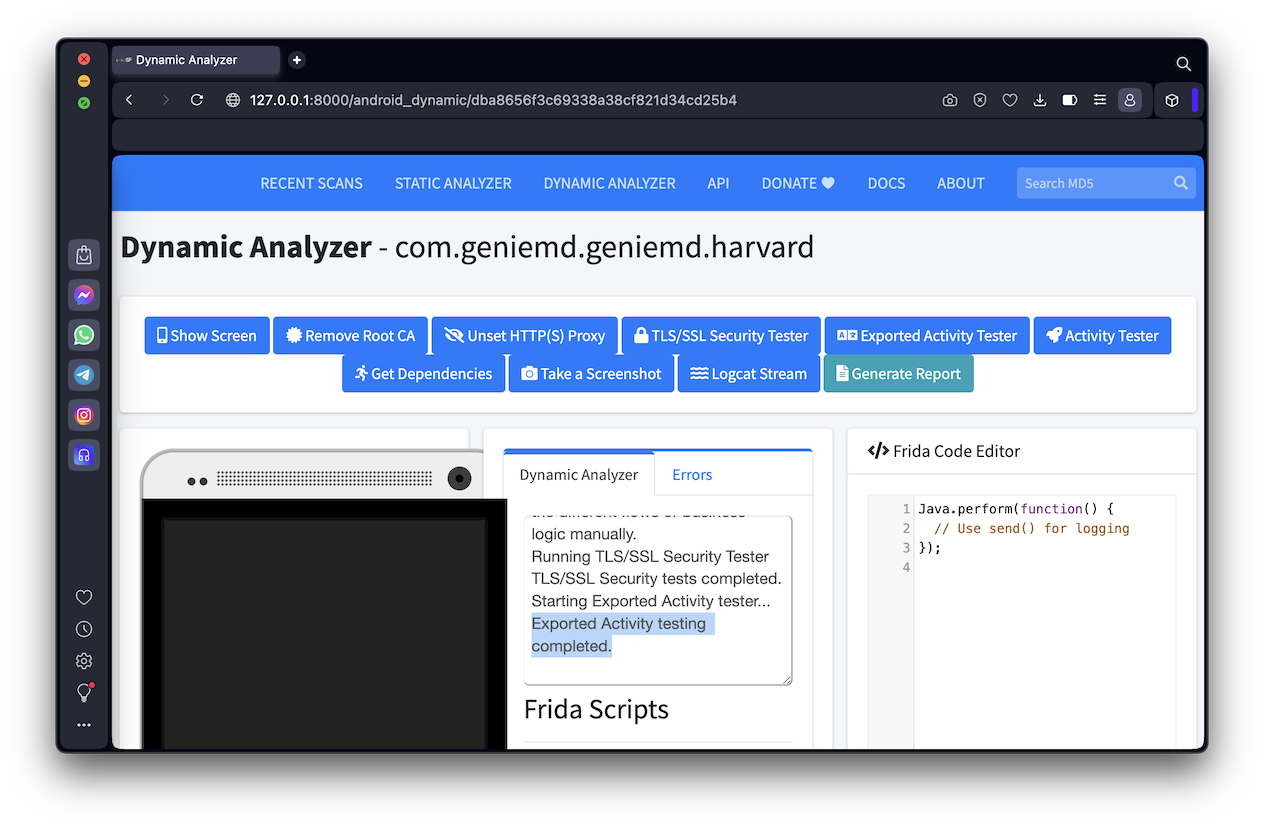 The MobSF Dynamic Analyzer page opens, as shown below.