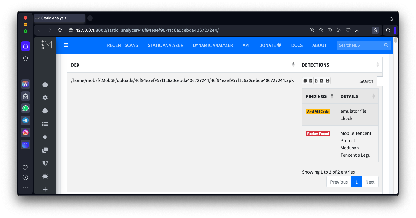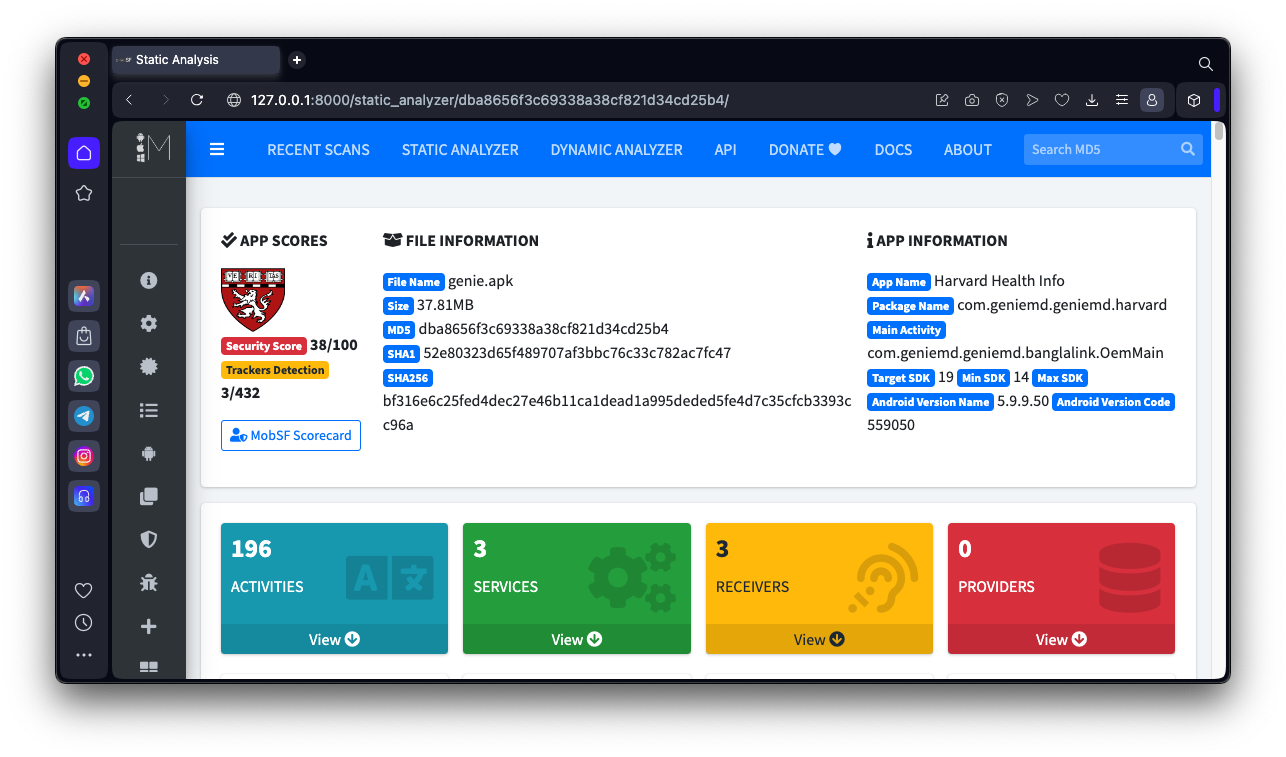 genie.apkDrag and drop the genie.apk file onto the MobSF Web page.