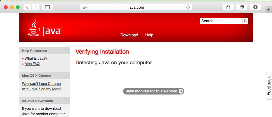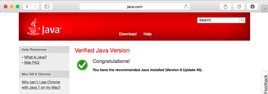 You should see the "Congratulations!" message shown below. If you don't, follow the instructions on the page to download and install Java.