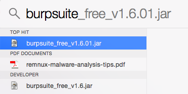 In the search box, type burpsuite. If Burp is already on your Mac, it will be found, as shown below.