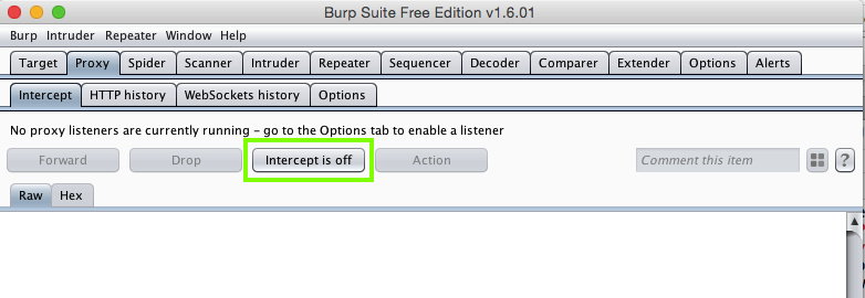 If the Intercept button reads "Intercept is on", click it, so the message reads "Intercept is off", as shown below.