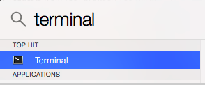 In the top right of the Mac desktop, click the magnifying glass. In the search box, type terminal