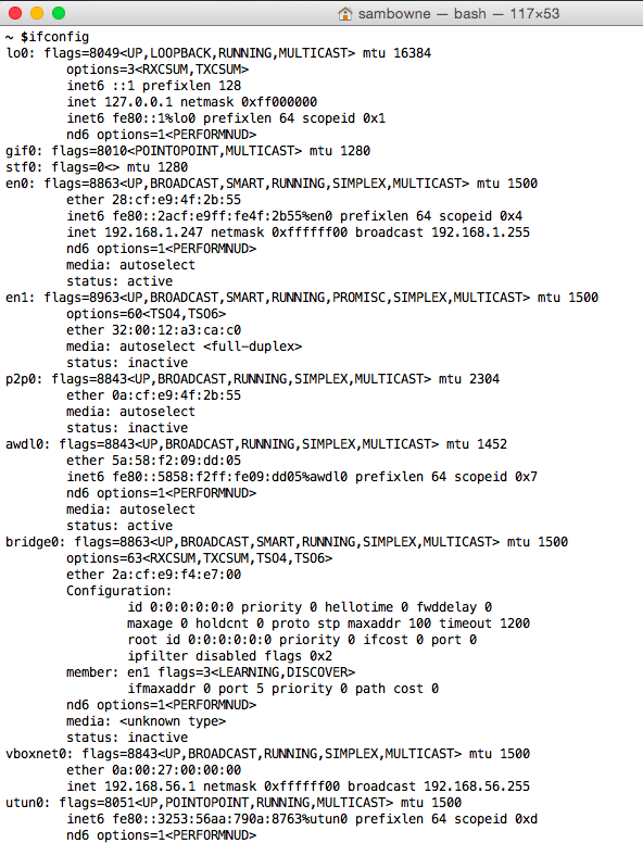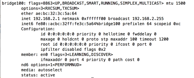 Make a note of your bridge interface name. You will need it later, when you configure the "pf" firewall.