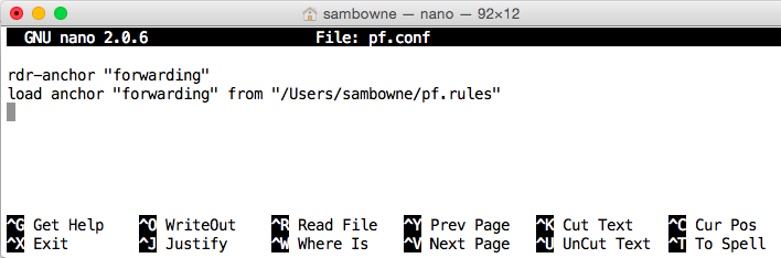 load anchor "forwarding" from "/Users/sambowne/pf.rules"