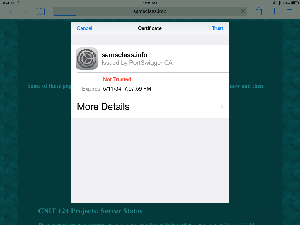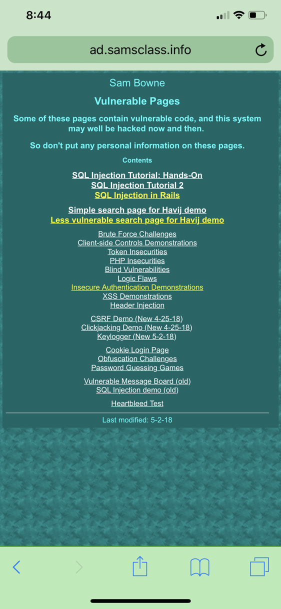 On your mobile device, in the browser, go to samsclass.info --this is a secure page.