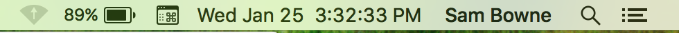 At the top right of your Mac, the little Wi-Fi icon changes to one-quarter of a circle with an upward arrow on it, as shown on the left side of the image below. This indicates that your Mac is now acting like a router, providing a Wi-Fi signal other devices can use.
