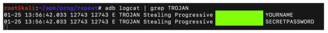 adb logcat | grep TROJAN