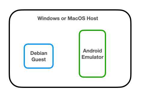 The guest systems may be running behind virtual routers, or in the cloud, so networking between the Debian and Android systems may be difficult.