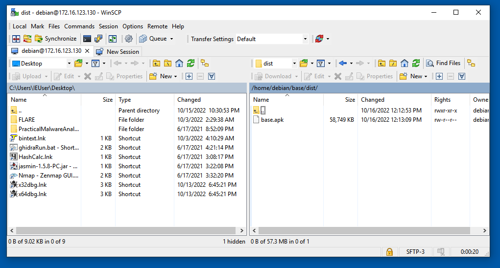 scp debian@172.16.123.130:~/base/dist/base.apk DesktopThe base.apk file appears on your desktop.