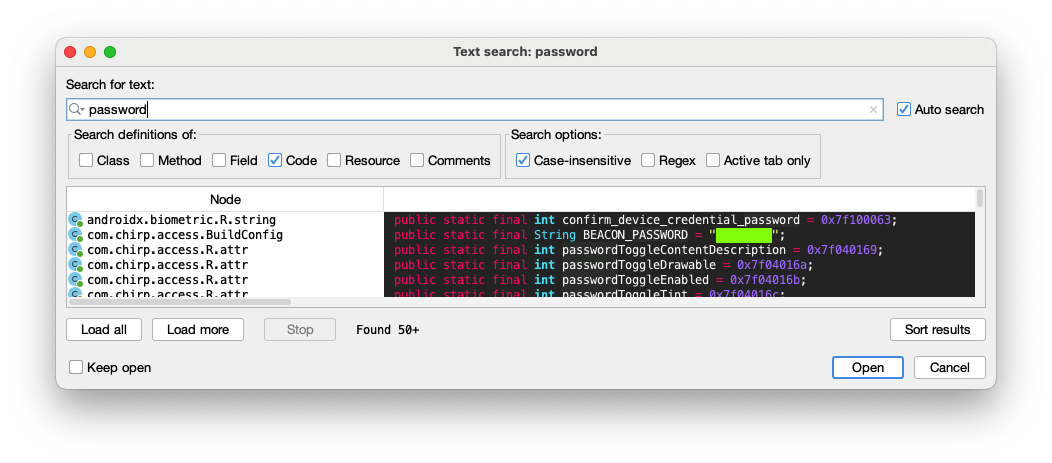 Search for "password"