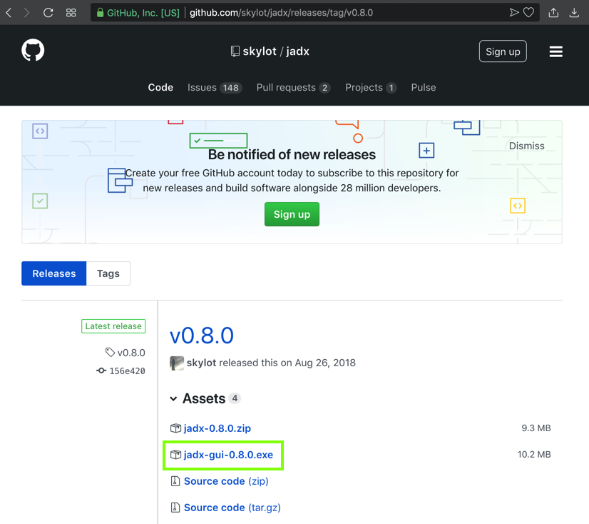 Go here:https://github.com/skylot/jadx/releases/tag/v0.8.0