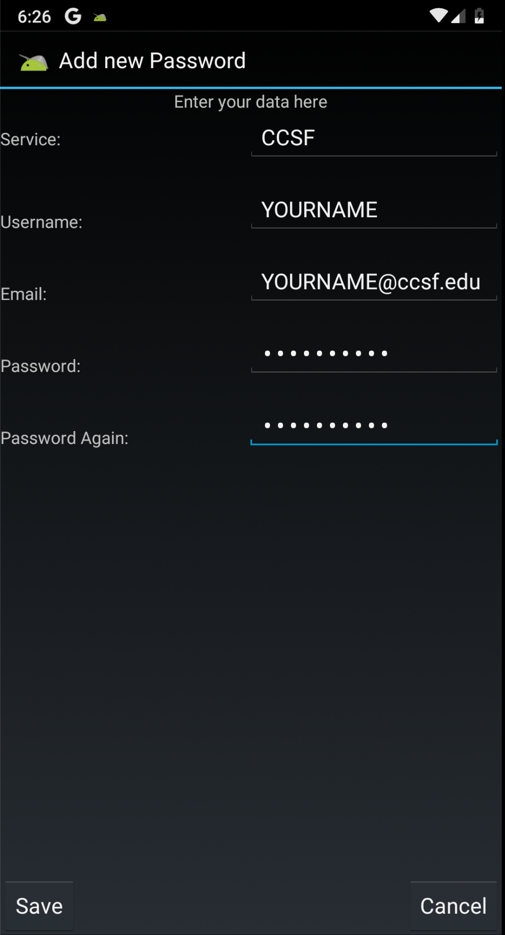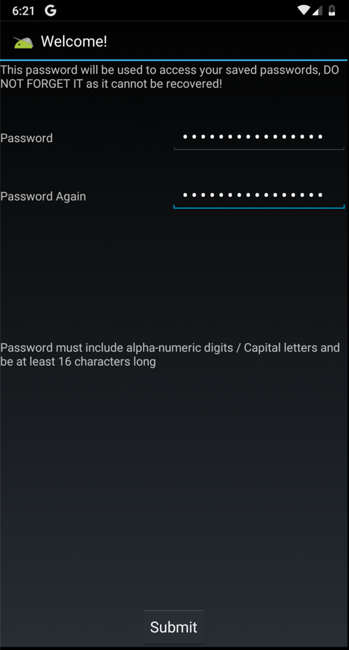 Don't put any real passwords into this app, of course, because they will be revealed later in the project.