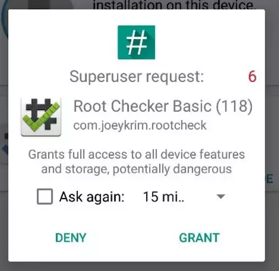 A box pops up saying "The SU binary needs to be updated". Click CONTINUE.