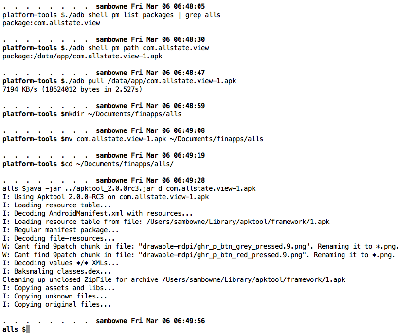 I pulled the APK file from the device with adb, and decoded the APK file with apktool, as shown below.