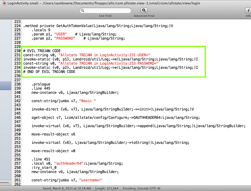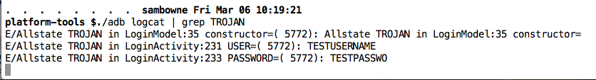The Proof of Concept code below merely logs the user id and password, where other apps on the phone can see it, but there's nothing preventing a better programmer from sending that data, and all the other data the app has, out over the Net.