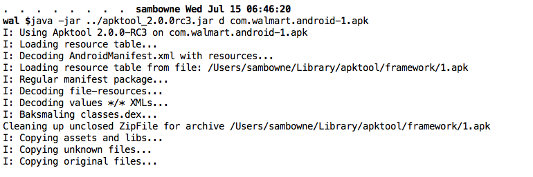 java -jar apktool_2.0.0rc3.jar d com.walmart.android-1.apk
