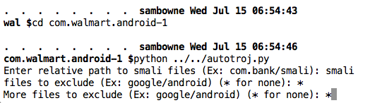 When it asks "Enter relative path to smali files (Ex: com.bank/smali):", type