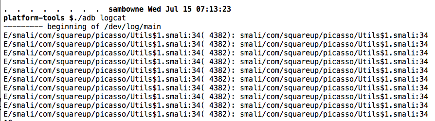 Then, in a Terminal window, navigate to your sdk/platform-tools directory and execute this commands to c display the log: