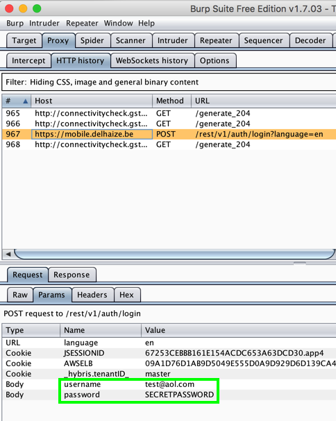 The data can be stolen via a MITM attack, because the SSL certificate is not verified.