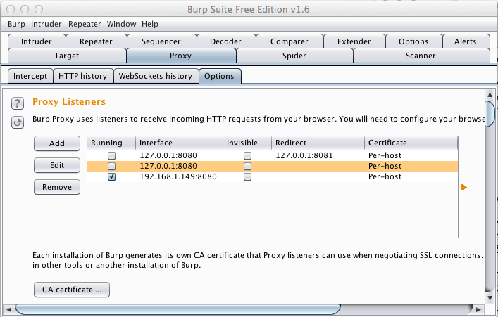 This is the way we want Burp set up to easily detect apps that don't validate SSL signatures.