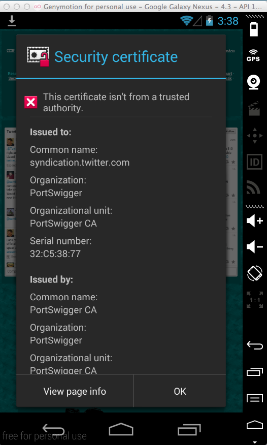 We want to add PortSwigger as a trusted certificate authority to get rid of these messages.