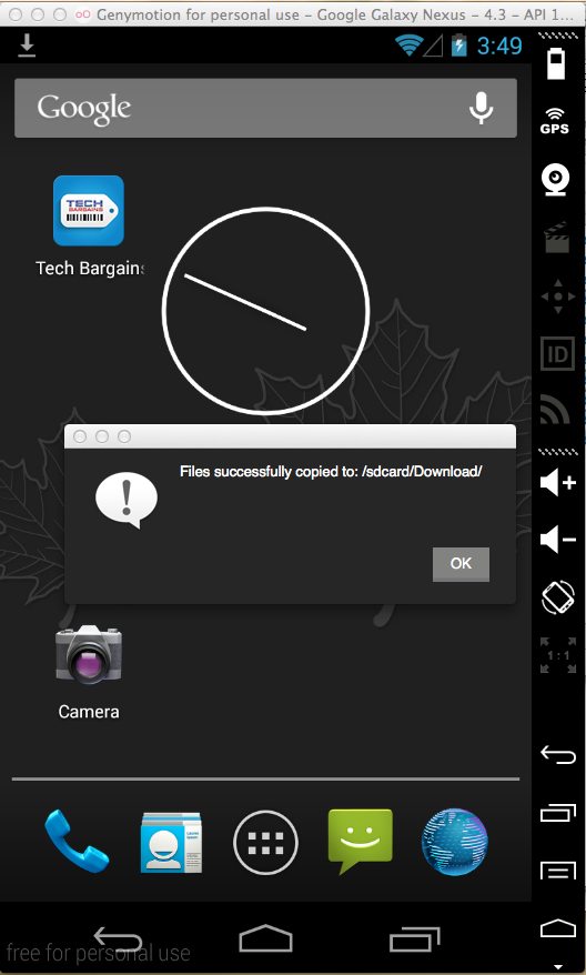 A message appears, saying "Files successfully copied to sdcard/Download", as shown below.