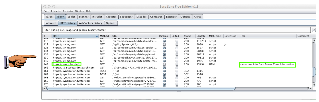 Find the line that shows the https://samsclass.info page loading, as shown below.