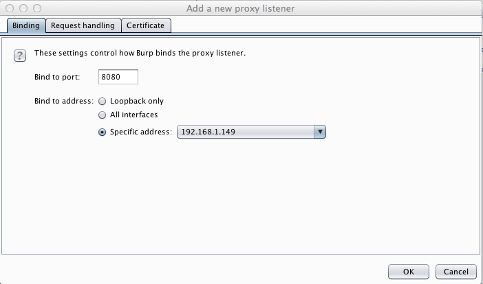 Burp should now show a listener on your IP address and port 8080, as shown below.