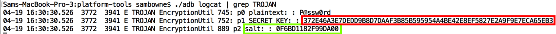 The log showed the parameters. Notice the "salt" value, as outlined in green below.