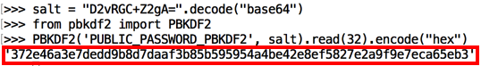 secret_key = PBKDF2('PUBLIC_PASSWORD_PBKDF2', salt).read(32)