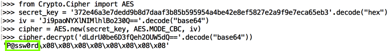 cipher = AES.new(secret_key, AES.MODE_CBC, iv)