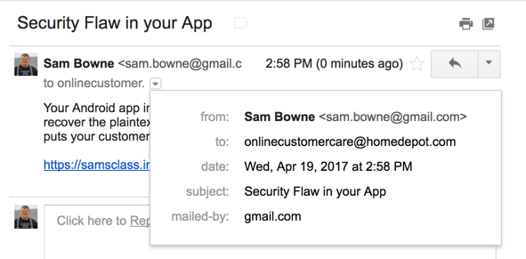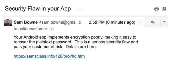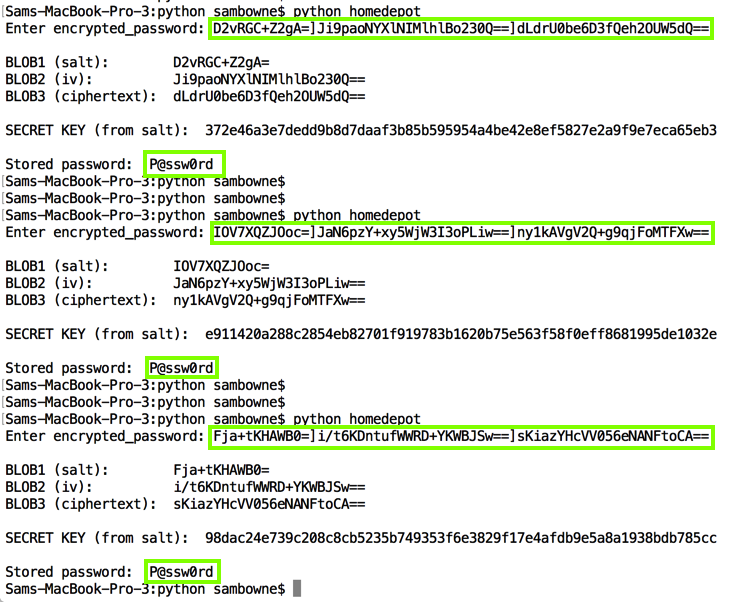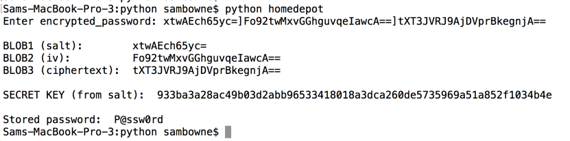 The remainder of this page merely proves this simple point by explicitly reverse-engineering the encryption used by Home Depot, and making a simple Python script that decrypts the password.