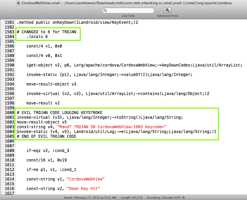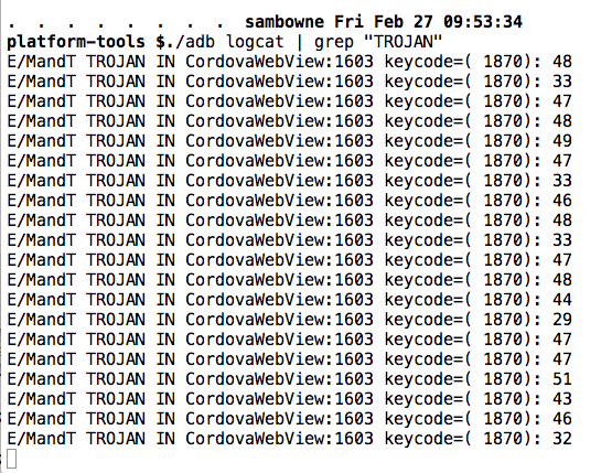 E/MandT TROJAN IN CordovaWebView:1603 keycode=( 1870): 43 o
