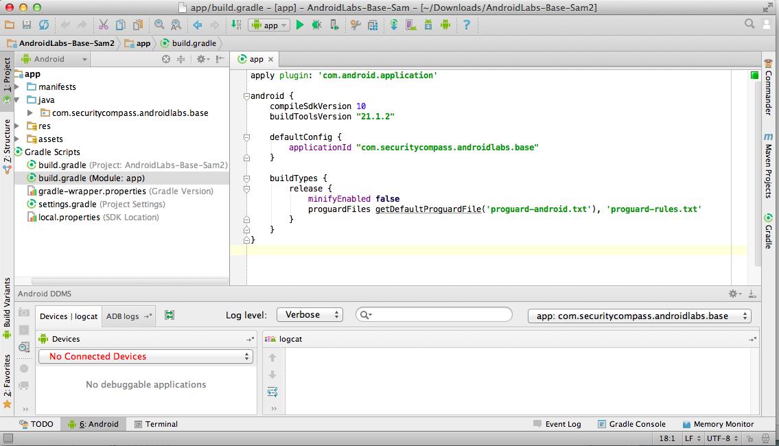 Navigate to the "AndroidLabs-Base-Sam" folder and click OK.