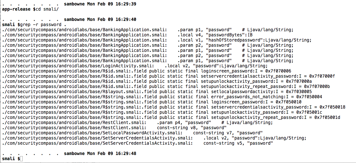 For reference, here are the occurrences of "password" in the decompiled APK file we've been using: