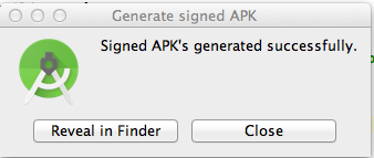 A box pops up saying "Signed APK's generated successfully", as shown below.