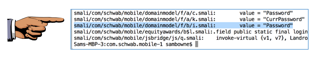 One place it's found is in the smali/com/schwab/mobile/domainmodel/f/b/i.smali file, as shown below.