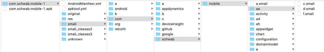 java -jar apktool_2.2.2.jar d com.schwab.mobile-1.apk