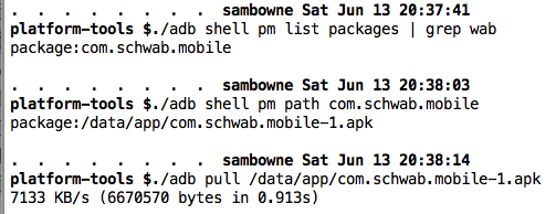 ./adb pull /data/app/com.schwab.mobile-1.apk
