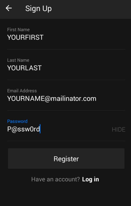 On the next page, create an account with your name in the email address, as shown below. Don't use the literal text "YORNAME", use some version of your own name instead.