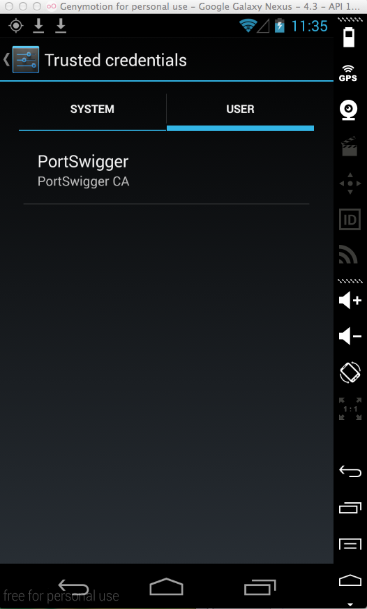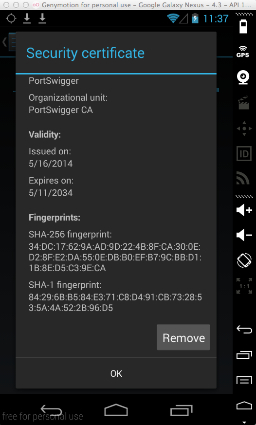 The PortSwigger certificate appears, as shown below.
